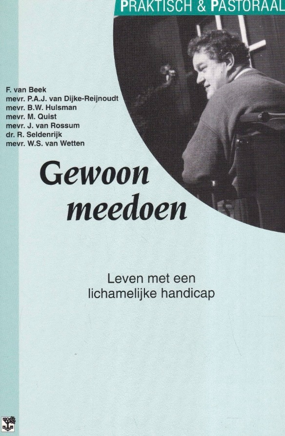 Gewoon meedoen Leven met een lichamelijke handicap Dit deel in de serie praktische en pastoraal wil een christelijke handreiking zijn bij het leven met een lichamelijke handicap. Allerlei aspecten van het leven van en het samenleven met volwassenen en kinderen met lichamelijke handicap komen aan de orde. De auteurs gaan in op de opvoeding van kinderen en op de begeleiding van jongeren. Ze besteden aandacht aan de vragen die er kunnen zijn rond huwelijk en seksualiteit, zowel bij mensen die vanaf hun geboorte een handicap hebben, als bij hen die daarmee op latere leeftijd worden geconfronteerd. Dit boek is voor velen van belang, met name vanwege de vermelde persoonlijke ervaringen. Daarmee kunnen ook hulpverleners hun winst doen.