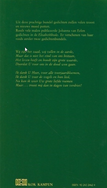 Uit deze prachtige bundel gedichten zullen velen troost en nieuwe moed putten.