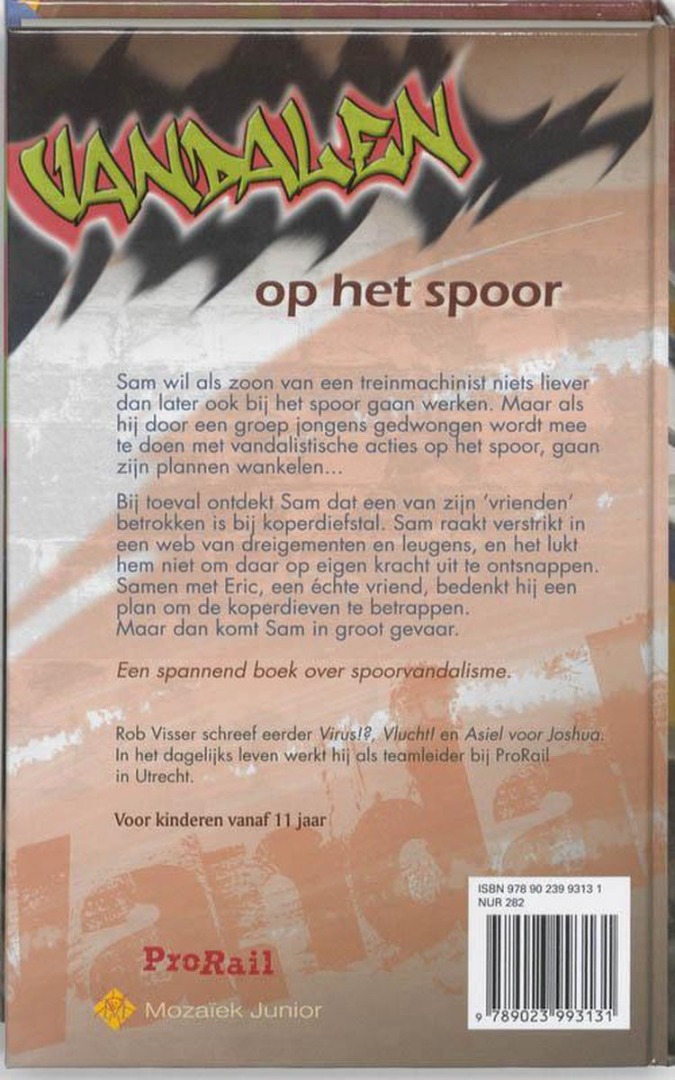 Sam wil als zoon van een treinmachinist niets liever dan later ook bij het spoor gaan werken. Maar als hij door een groep jongens gedwongen wordt mee te doen met vandalistische acties op het spoor, gaan zijn plannen wankelen...Bij toeval ontdekt Sam dat een van zijn ‘vrienden’ betrokken is bij koperdiefstal. Sam raakt verstrikt in een web van dreigementen en leugens, en het lukt hem niet om daar op eigen kracht uit te ontsnappen. Samen met Eric, een échte vriend, bedenkt hij een plan om de koperdieven te betrappen. Maar dan komt Sam in groot gevaar.Een spannend boek over spoorvandalisme. Rob Visser schreef eerder Virus!?, Vlucht! en Asiel voor Joshua. In het dagelijks leven werkt hij als teamleider bij ProRail in Utrecht.Voor kinderen vanaf 11 jaar.