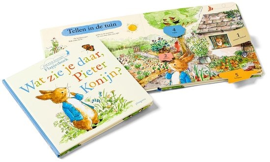 Ontdek kleuren, tegenstellingen, vormen en getallen van 1 tot 5, samen met Pieter Konijn en zijn vriendjes. Kijk onder alle flapjes: wat zie je daar?