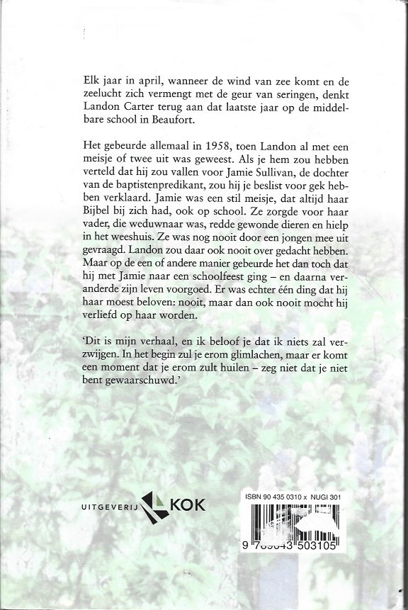Landon, een jongen van zeventien jaar, heeft veel contact met de meisjes van zijn school. Die plagen de stille Jamie Sullivan, dochter van een baptistenpredikant. Altijd heeft zij de Bijbel bij zich en ze leeft ook op school een teruggetrokken leven. Landon moet er niet aan denken ooit met haar naar een schoolfeest te gaan. Wanneer dat onverwacht toch gebeurt, worden ze verliefd. Een liefde die een tragisch einde krijgt als zij leukemie blijkt te hebben. Een ontroerend verhaal op christelijke grondslag.