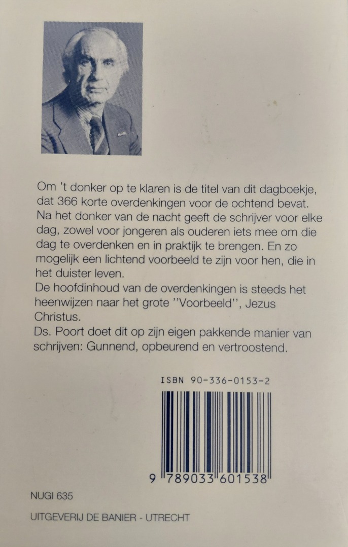 Dit dagboekje bevat 366 overdenkingen voor de ochtend. Na het donker van de nacht geeft de schrijver voor elke dag, zowel voor jongeren als ouderen, iets mee om die dag te overdenken en in de praktijk te brengen. Ds. Poort schreef dit op zijn eigen pakkende manier: gunnend, opbeurend en vertroostend.