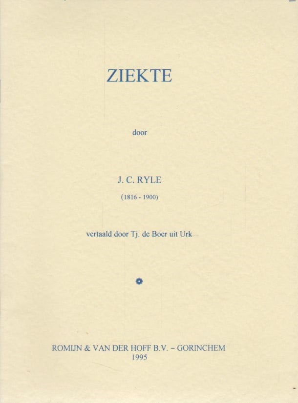 J.C.Ryle (1816-1900) was anglicaans bisschop te Liverpool. Zijn geschriften zijn helder geschreven en gericht op de praktijk van het christelijk geloof. In dit boekje geeft hij praktische adviezen over het omgaan met ziekte.