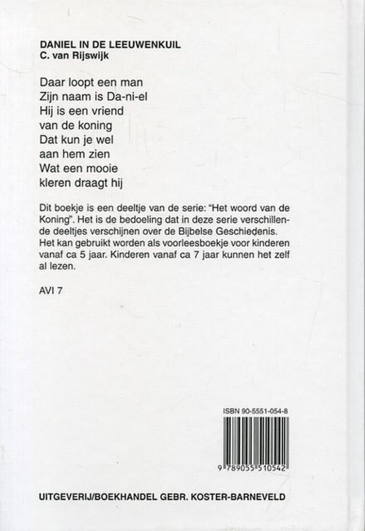 Serie 'Het Woord van de Koning' deel 5. De zinnen zijn kort en bestaan uit één- of twee-lettergrepige woorden. Om voor te lezen vanaf ca. 5 jaar. Ook heel geschikt om zelf te lezen vanaf 7 jaar.