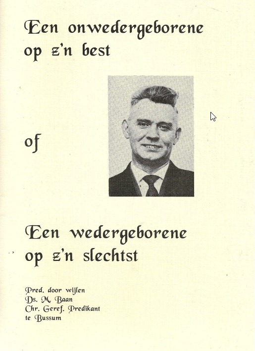 De onwedergeborene op z'n best en een wedergeborene op z'n slechtst, tweetal predikatiën door ds. M. Baan, Christelijk Gereformeerd Predikant te Bussum.