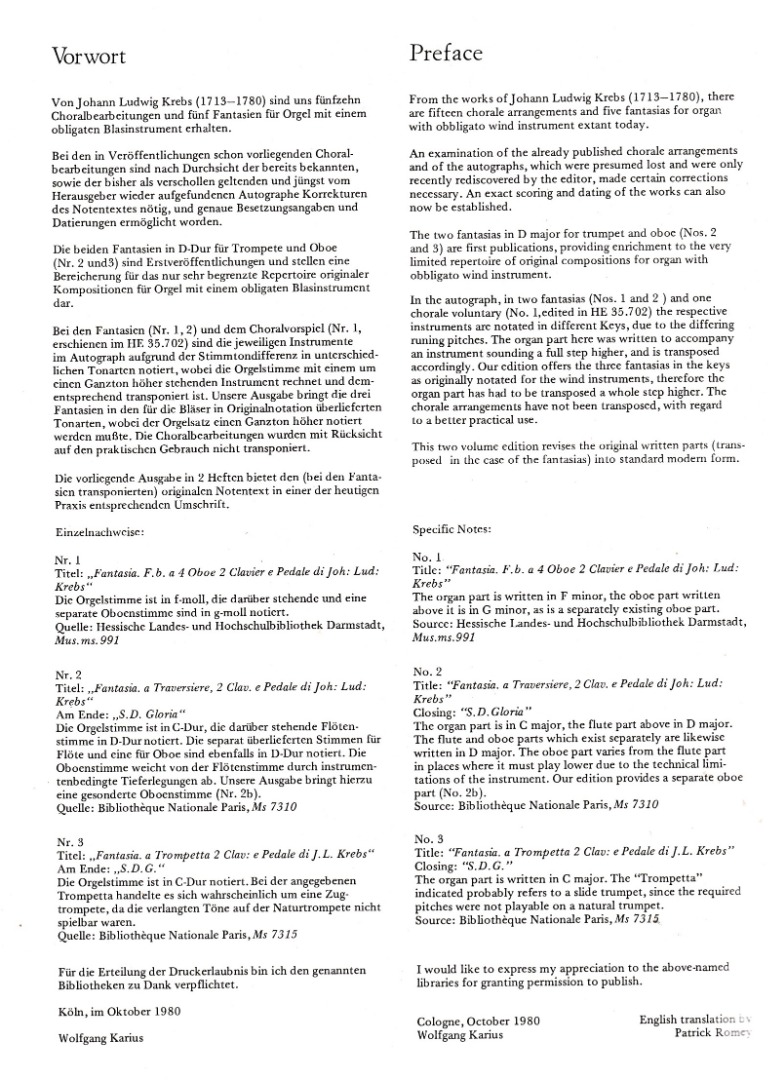 Krebs, Johann Ludwig - Vier Choralvorspiele und drei Fantasien (Hansler 35.703)