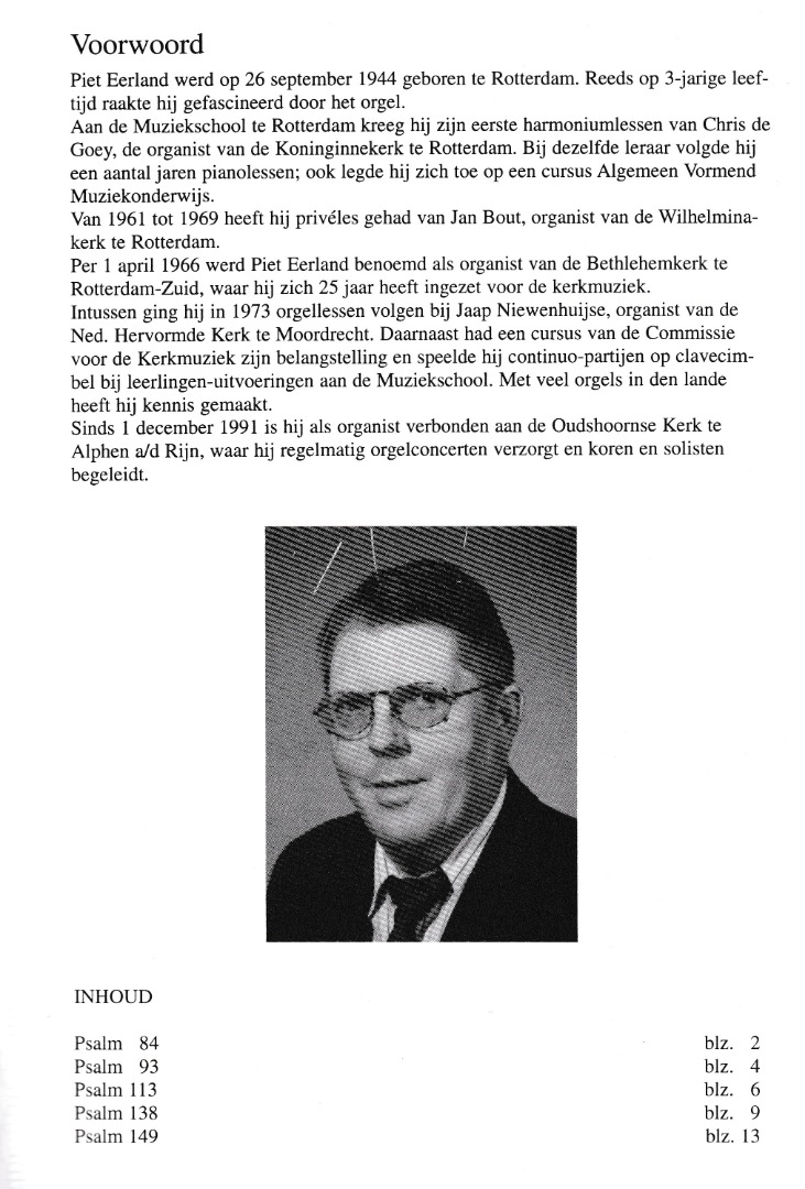 Psalm 84, 93, 113, 138 en 149 door Piet Eerland.