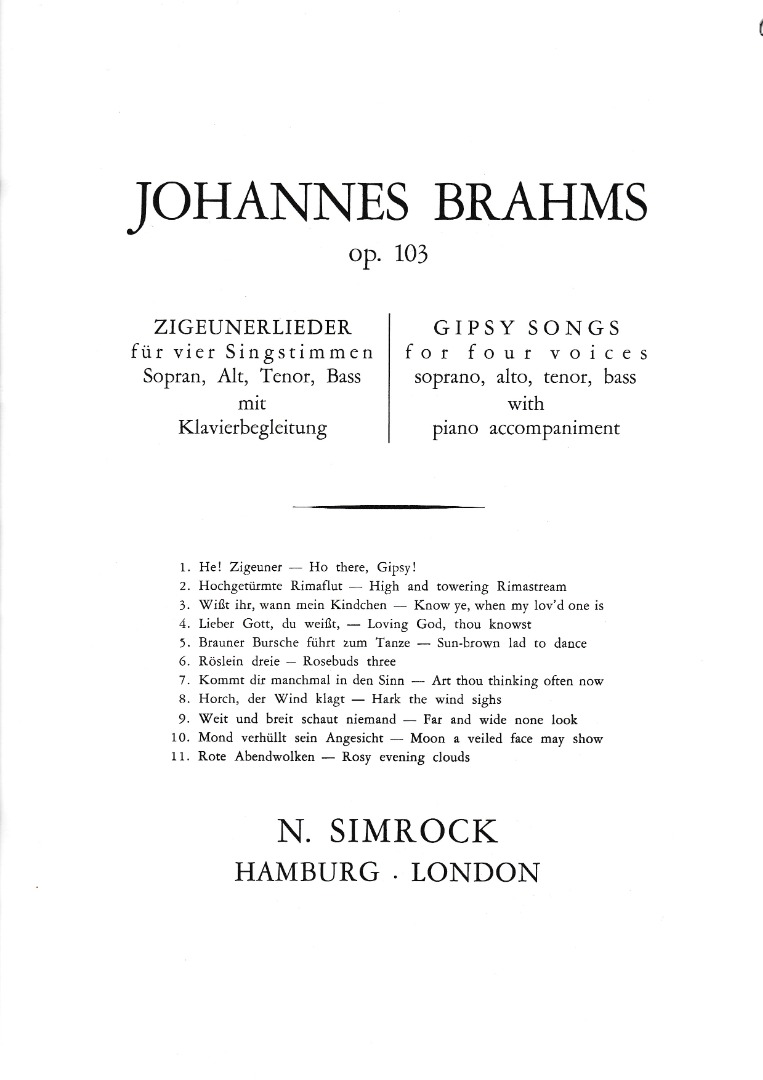 Brahms, Johannes - Zigeunerlieder für Sinstimmen und Klavier