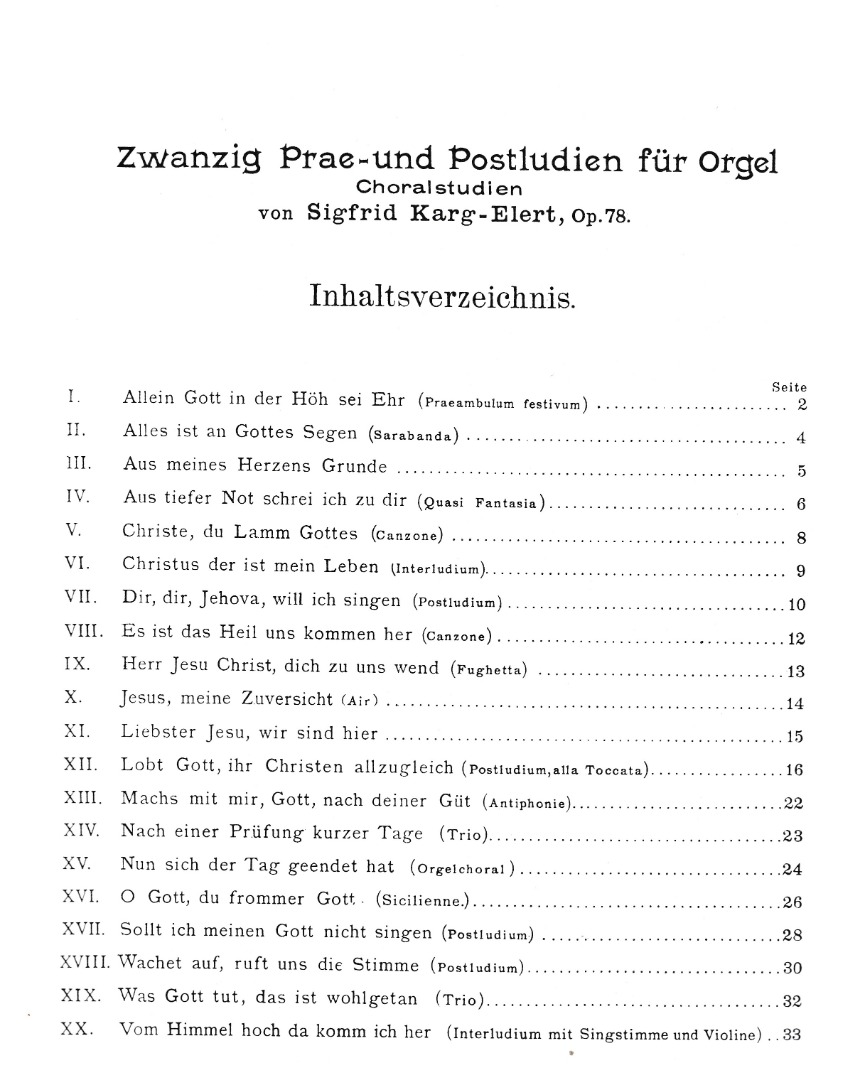 Karg-Elert, Sigfrid - Twenty Preludes and Postludes for organ (opus 78)