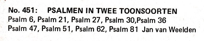Weelden, Jan van - Psalmen in 2 toonsoorten (WIL451)