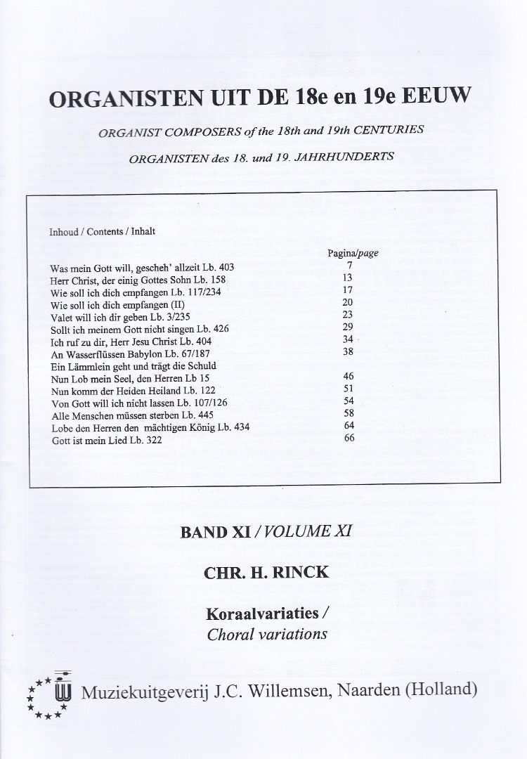 Rinck, Chr. H. - Organisten uit de 18e en 19e eeuw (band 11) (WIL967)