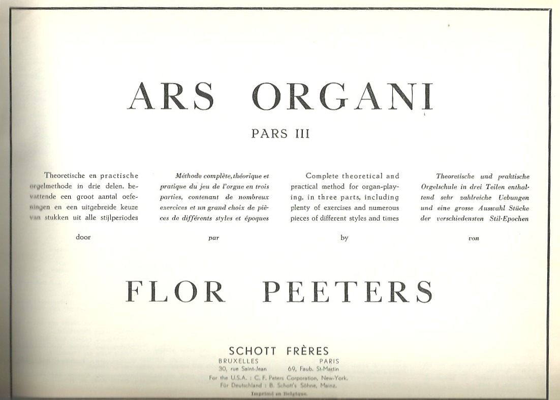 In zijn succesvolle lesboek "Ars Organi" bundelt Peeters theoretische kennis en praktische oefeningen over alle aspecten van het orgelspel in drie delen.