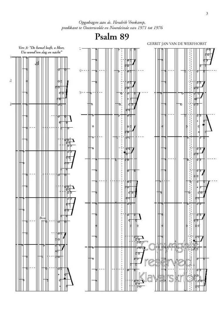 Psalm 89; Vers 3 – De hemel looft, o Heer Uw wond’ren; Vers 19 – Het leven is een damp; Vers 20 – Gedenk de smaad.