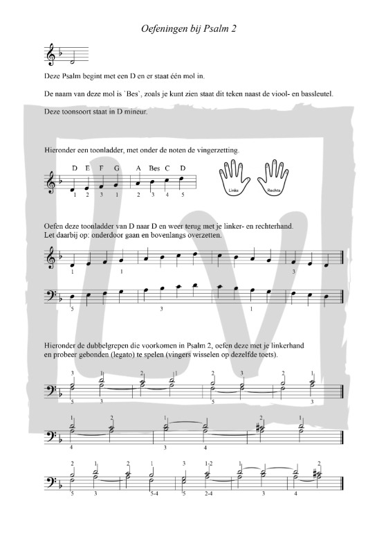 – Dubbelgreep akkoorden: Hiermee train je je hand om in één keer de juiste greep te pakken en het wisselen van de vingerzetting op dezelfde toets, zodat je daarna de Psalm met meer gemak kunt spelen.