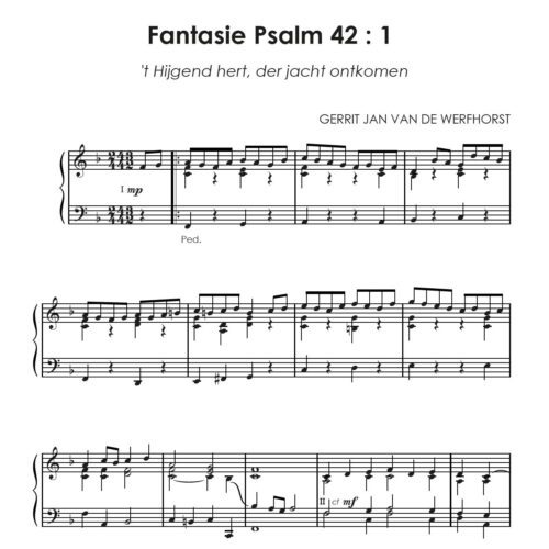 Koraalfantasie voor orgel over Psalm 42, geïnspireerd door het eerste vers (berijming 1773): ’t Hijgend hert, der jacht ontkomen”.