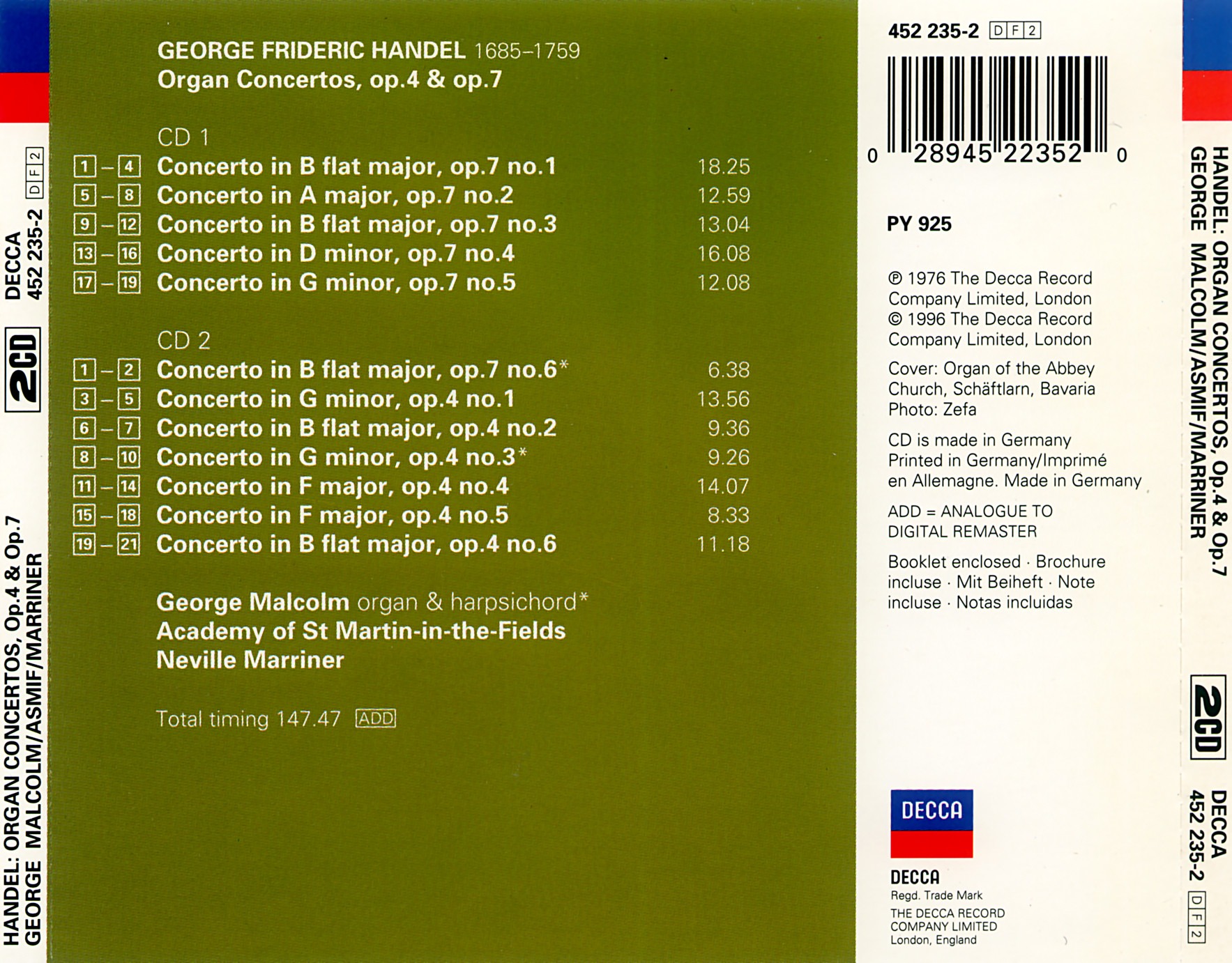 Malcolm, George - Handel Organ concertos 4 & 7 (2CD)