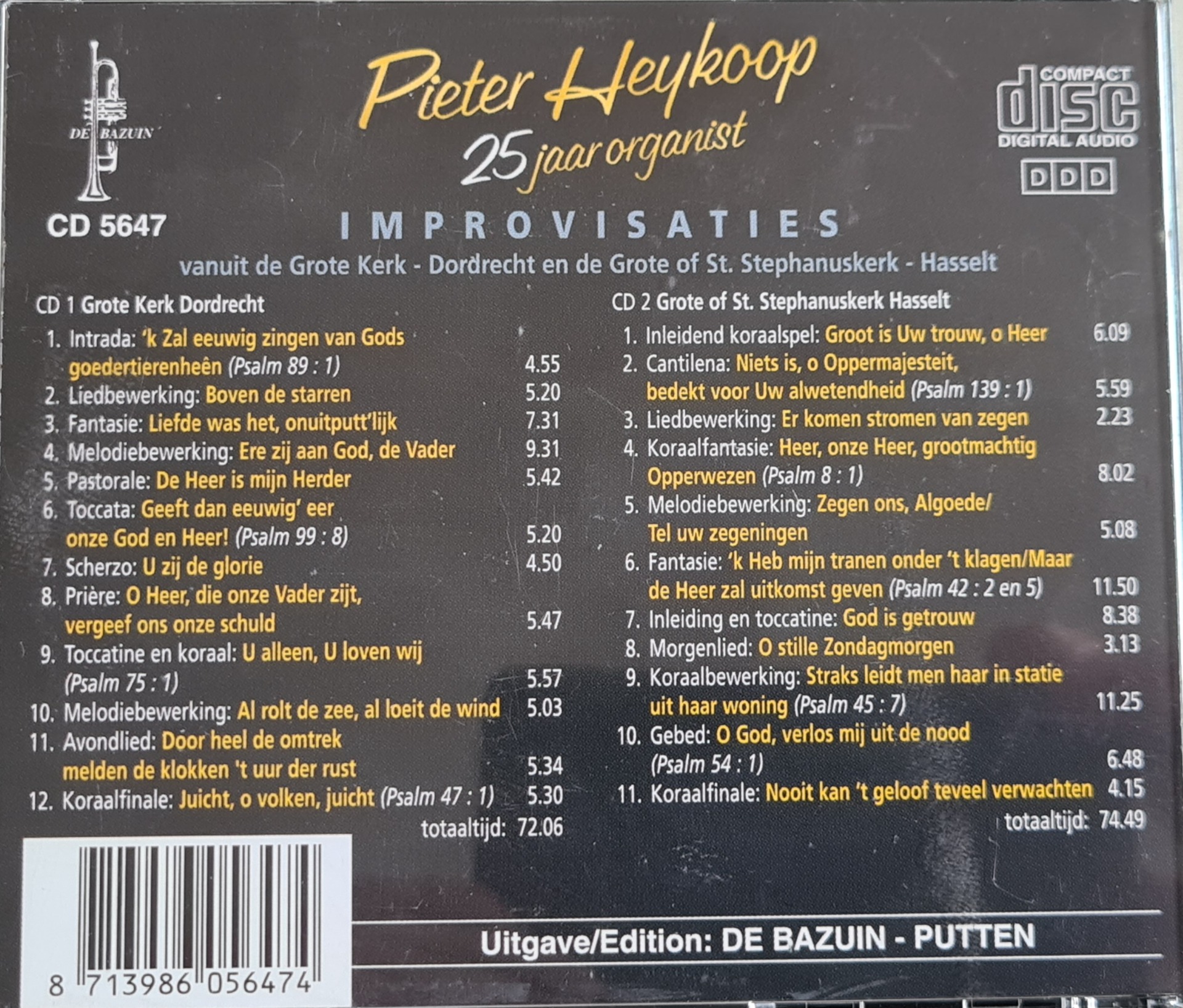 Pieter Heykoop 25 jaar organist met 2 cd opnames vanuit en Hasselt en uit Dordrecht met improvisaties
