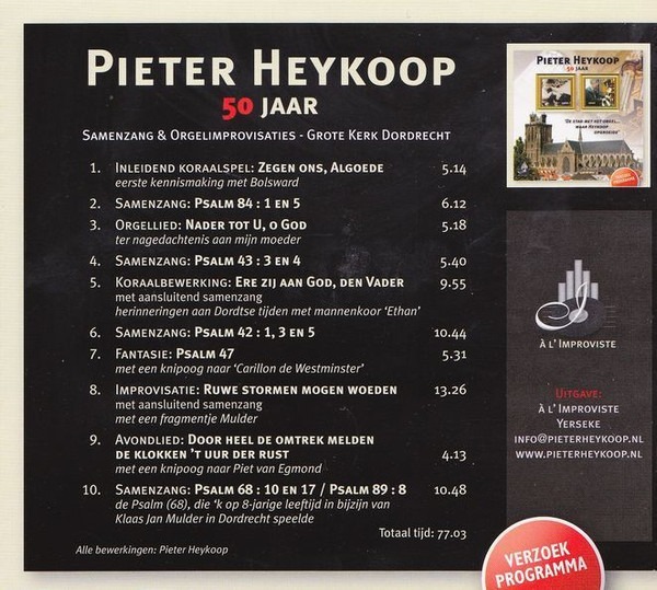 Pieter Heykoop 50 jaar organist vanuit de Grote Kerk te Dordrecht.