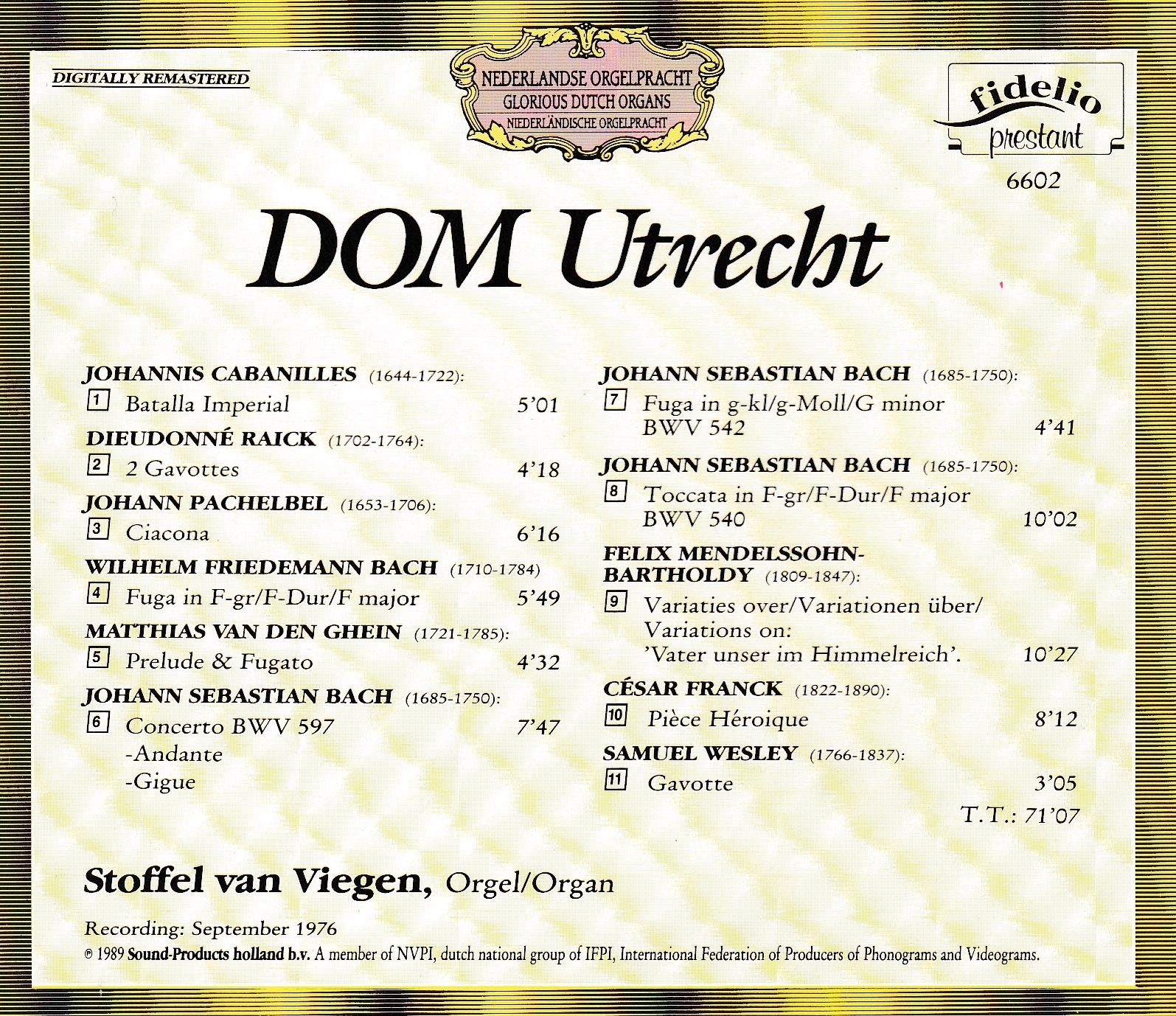 Viegen, Soffel van - Nederlandse Orgelpracht (2) - Dom in Utrecht