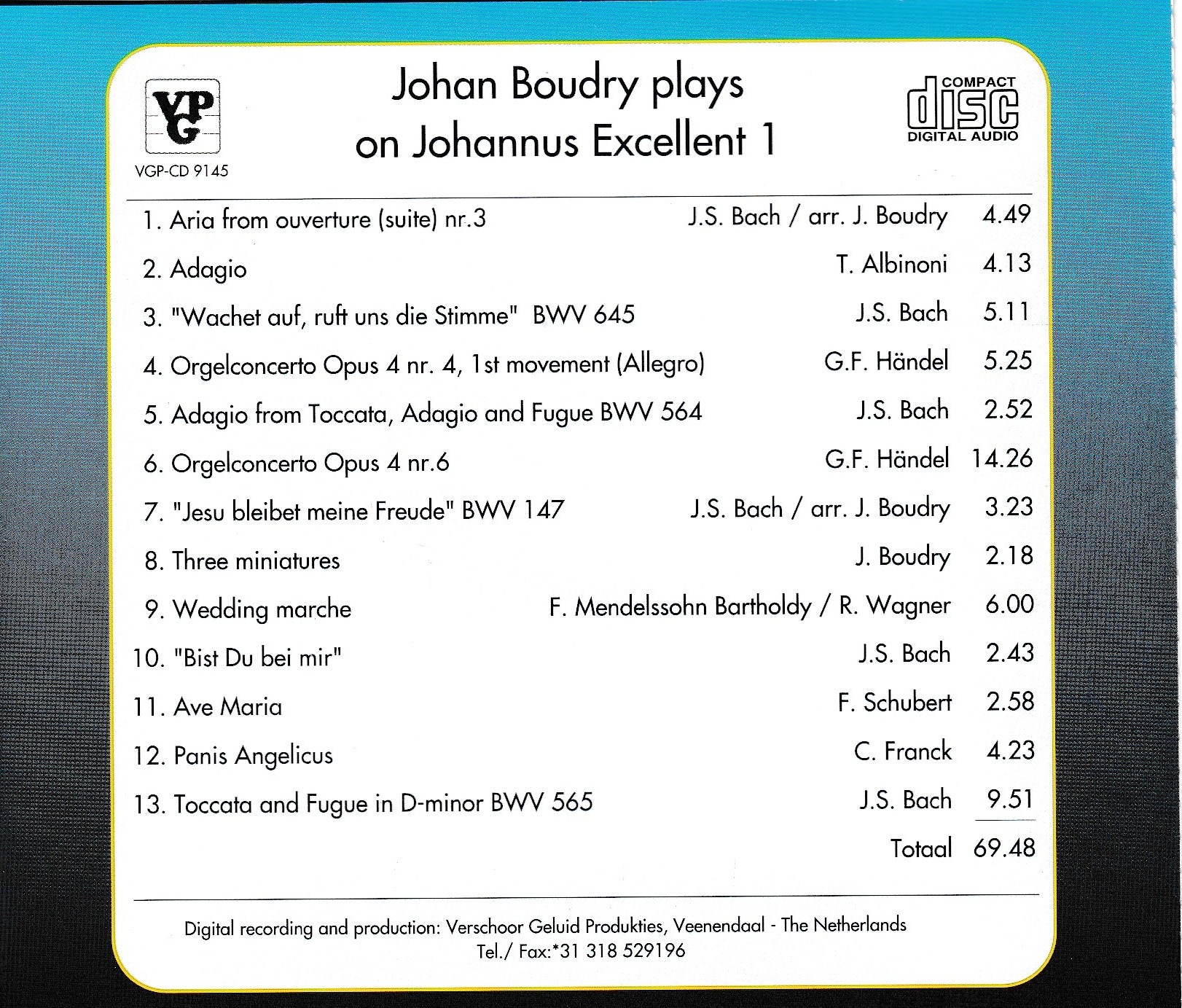 Boudry, Johan - Plays on Johannus Excellent I