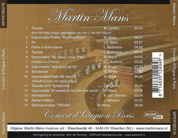 Op deze CD bespeelt Martin Mans het schitterende Van den Heuvel-orgel in de Saint Eustache in Parijs.