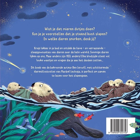 Wist je dat mieren dutjes doen? Kun je je voorstellen dat je staand kunt slapen? En welke dieren snurken, denk jij? Kruip lekker in je bed en ontdek de lieve – en verrassende – slaapgewoonten van dieren over de hele wereld. Sommige dieren lijken op ons. Maar andere zijn HEEL anders! Elke bladzijde staat vol leuke weetjes en vragen die je aan het denken zetten... Dit boek van de bekroonde auteur Ben Lerwill, met schitterende dierenillustraties van Maribel Lechuga, is perfect om samen te lezen voor het slapengaan.