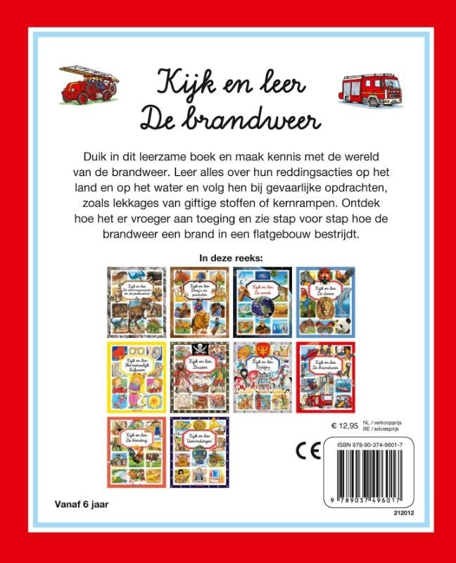 Duik in dit leerzame boek en maak kennis met de wereld van de brandweer. Leer alles over hun reddingsacties op het land en op het water en volg hen bij gevaarlijke opdrachten, zoals lekkages van giftige stoffen of kernrampen. Ontdek hoe het er vroeger aan toeging en zie stap voor stap hoe de brandweer een brand in een flatgebouw bestrijdt.