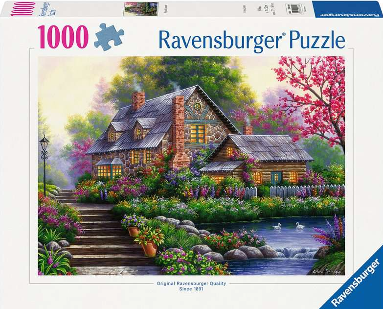 Romantische cottage puzzel bestaande uit 1000 stukjes.