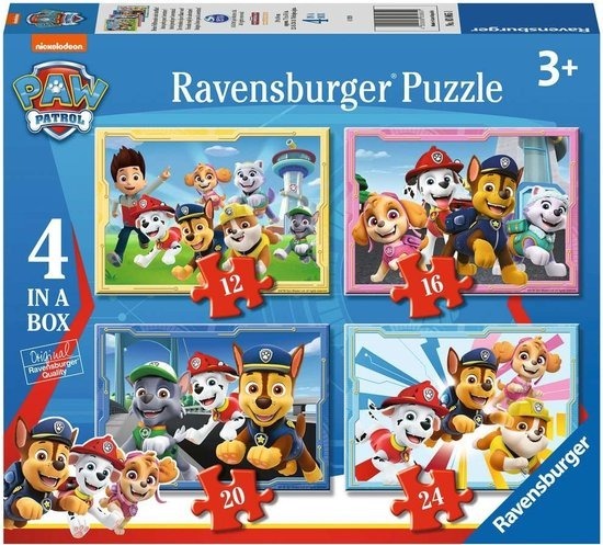 Ontsnap uit de realiteit en stap in de wereld van Ravensburger puzzels. Tijdens het puzzelen ontdekken kinderen hun grootse vaardigheden. Maak wel 4 verschillende puzzels met de speciale 12+16+20+24 puzzle box van Ravensburger! Dankzij de met de hand gemaakte stansmessen is de vormvariatie van de stukjes oneindig. Kinderen vanaf 3 jaar zullen genieten van de Paw Patrol:Puppies op pad puzzels met 12, 16, 20 en 24 stukjes. Ravensburger puzzels met 12, 16, 20 en 24 stukjes met als thema Paw Patrol.